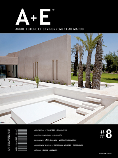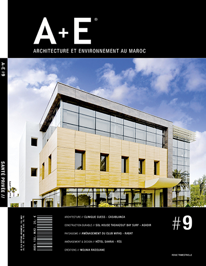 A+E Architecture et Environnement au Maroc est une revue trimestrielle, qui reprend les moments forts de l’architecture contemporaine au Maroc. Aujourd’hui, l’architecture fait vivre en synergie plusieurs domaines indissociables : paysagisme, construction durable, conception lumière, design d’intérieur, scénographie, aménagement… Chacun d’entre eux occupe une place importante dans la chaine de conception et de construction.